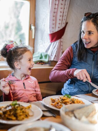 And also your children will have a lot of fun: After the hunger has been satisfied, they can romp around on vast alpine meadows and observe the grazing animals on their pastures, while you have a refreshing drink and relax from your hiking or bike tour. Needless to say, you will always be surrounded by breathtaking panoramic views of the neighbouring mountain peaks.
