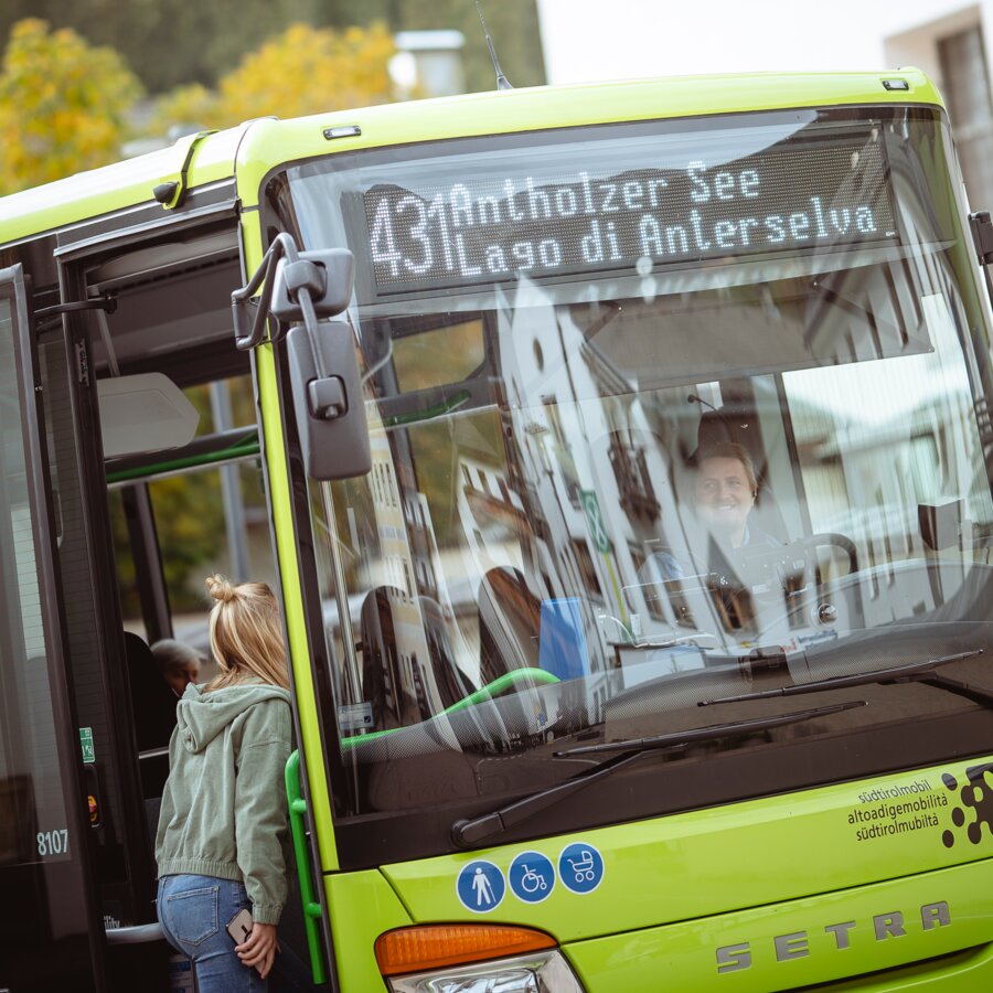 La Valle Anterselva è comodamente raggiungibile con la linea bus 431. L’autobus è dotato di una rampa alla porta posteriore, che permette anche ai passeggeri in sedia a rotelle di salire in modo confortevole e sicuro.