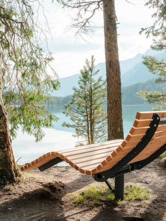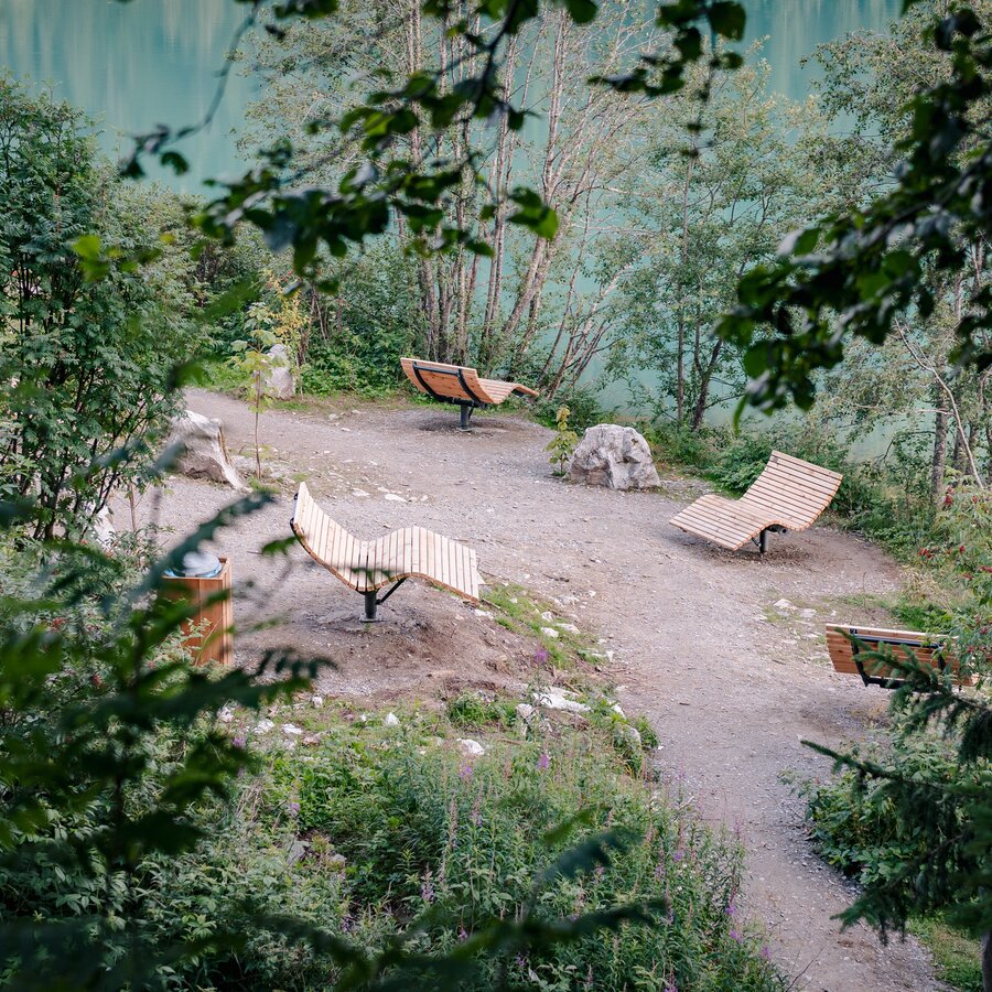 Sedetevi! La nuova area relax sulla riva sinistra del Lago di Anterselva è un luogo dove rilassarsi e distendersi. Grandi lettini relax girevoli invitano a lasciar vagare lo sguardo sulla calma superficie dell'acqua. Immersi nel silenzio della natura, potrete respirare l'aria fresca di montagna, ascoltare il dolce sciabordio dell'acqua e lasciarvi alle spalle lo stress della vita quotidiana. Godetevi il momento in mezzo a questo scendario montano unico!