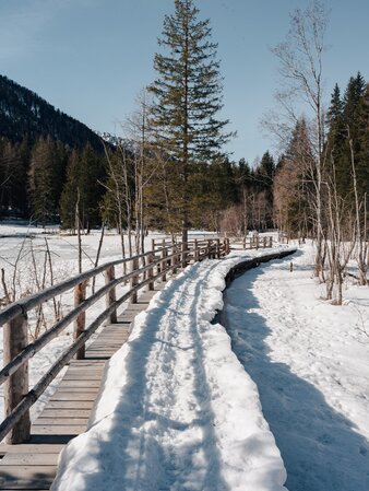 Volete saperne di più? Abbiamo ottimi suggerimenti per le vostre attività ed esperienze al Lago di Anterselva! Potrete passeggiare sul sentiero didattico naturalistico del lago per conoscere la sua flora e fauna. Oppure intraprendere emozionanti avventure, per ammirare il lago dall'alto: cosa ne pensate di una piacevole camminata in malga, o di un’escursione in montagna su una delle circostanti 38 cime di tremila metri o ancora di un tour in MTB al Passo Stalle? Ma il lago non è una meta amata solamente in estate, perché in inverno, non appena le sue acque si ghiacciano, vi invita a praticare lo sci di fondo, a intraprendere escursioni invernali e tante altre attività all’aria aperta in un paesaggio da favola.