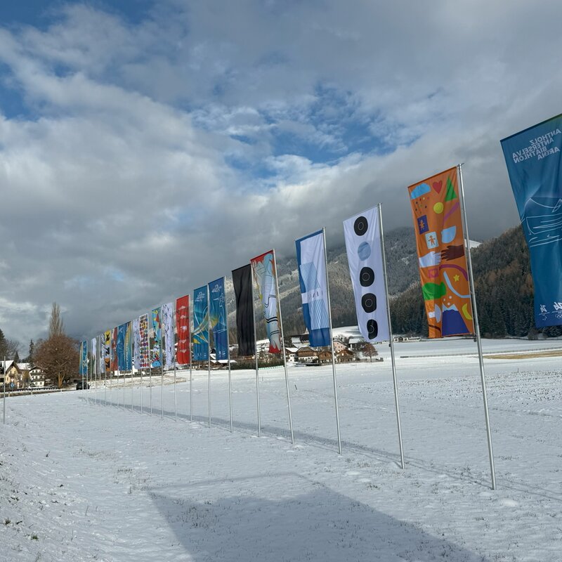 Il Südtiroler Künstlerbund (SKB) e l’ECK Museum of Art hanno invitato diversi artisti e artiste a progettare una bandiera che, in occasione dei Giochi Olimpici Invernali 2026, sventolerà all’ingresso della Valle Anterselva, un luogo strategicamente importante durante le competizioni in Alto Adige.