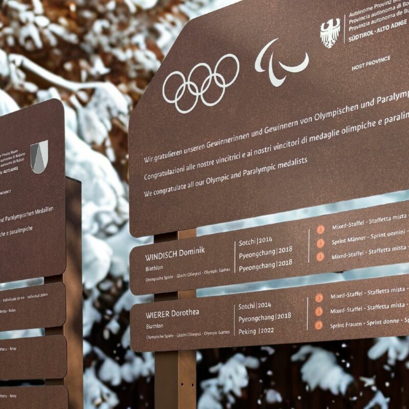 In 32 comuni hanno collocate delle targhe commemorative che ricordano i successi degli atleti altoatesini ai Giochi Olimpici. In questo modo saranno onorati coloro che hanno conquistato medaglie olimpiche.