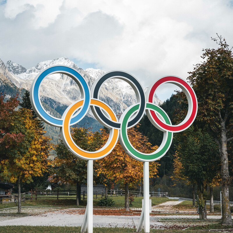 I cerchi olimpici di Anterselva Mittertal sono lo sfondo ideale per scattare indimenticabili foto di ricordo con l'imponente paesaggio montano di Anterselva sullo sfondo.
