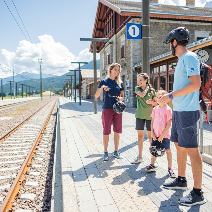 Lo sapevi? A Brunico, le piste ciclabili non sono le uniche a meritarsi il massimo dei voti: anche i trasporti pubblici sono da dieci e lode. E possono rivelarsi estremamente utili, ad esempio quando il tempo cambia improvvisamente o le energie entrano in riserva. Quindi non ti porre limiti, pianifica pure giri lunghi e ambiziosi: se a un certo punto ti vedrai in difficoltà , la combinazione bici e treno ti trarrà d'impaccio. A viaggiare comodamente su rotaie sarete sia tu che la tua bici. Va da sé che è una soluzione ottimale se ti muovi con bambini piccoli al seguito o se vuoi ritagliarti il tempo per l'una o l'altra visita turistica.