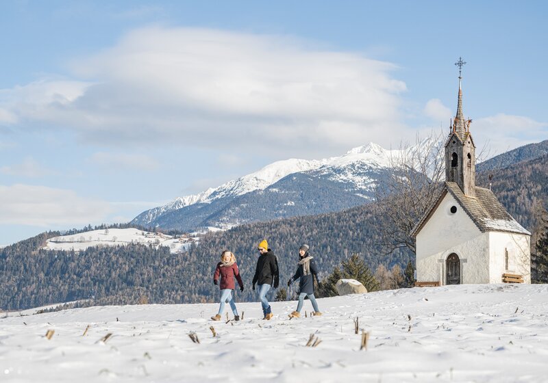 Se ciò che desideri è un'attività a contatto con la natura lontano dalla frenesia delle piste da sci, nei dintorni di Brunico troverai le condizioni ideali. I meravigliosi sentieri escursionistici della zona sono perfettamente agibili anche in inverno e si snodano attraverso un paesaggio incontaminato che in questo periodo dell'anno appare ancor più magico sotto una scintillante coltre di neve. La Valle di Vila sopra Perca o la Valle di Rio Molino sopra Gais, per esempio, sono particolarmente belle nella stagione fredda, con sentieri che attraversano idilliaci boschi e offrono scorci mozzafiato sul paesaggio innevato. Tieni conto, inoltre, che un'escursione invernale a Brunico è non solo un toccasana per l'anima ma anche una delizia per il palato – basta mettere in programma una gustosa sosta in baita.