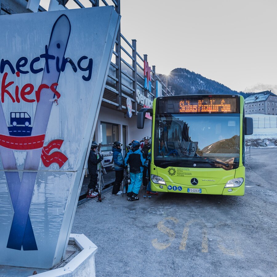 Perché mai prendere la macchina per raggiungere la stazione sciistica? Non è di gran lunga meglio prendere lo skibus? Il servizio collega regolarmente le località della zona con gli impianti di risalita. Monti a bordo con gli sci e tutta l'attrezzatura e scendi alla stazione a valle più vicina. Più comodo di così non si può!