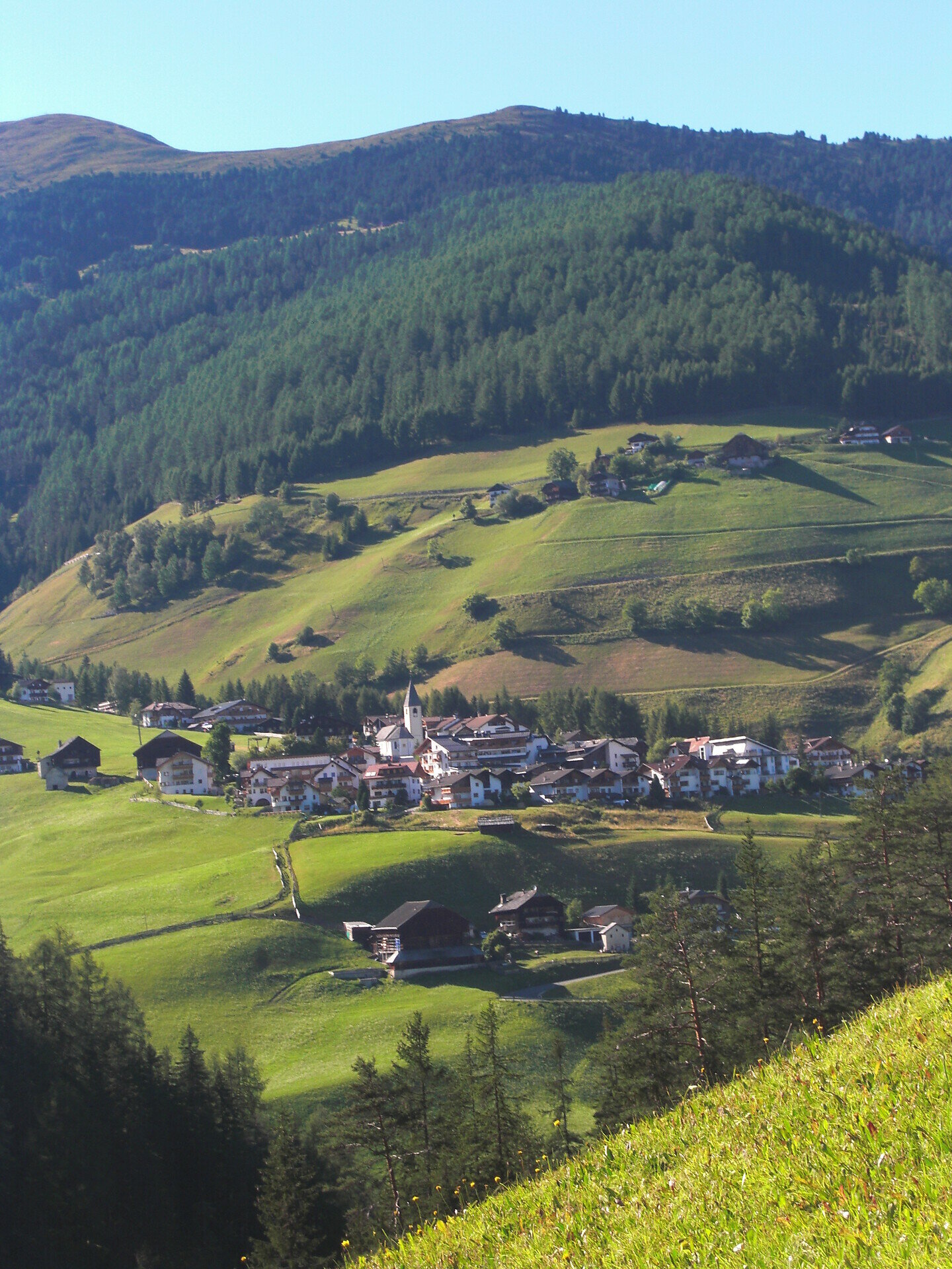 Take trail no. 20 from the Antermoia sports grounds and head uphill to the hamlet Colac along a sun-spoilt path with stunning views. Follow the road which descends into the valley and keep left until you reach the hamlet Val. Continue along the Michael Plattner trail (20a) through the forest. At the wooden bridge, take a left along the road towards Rina.
