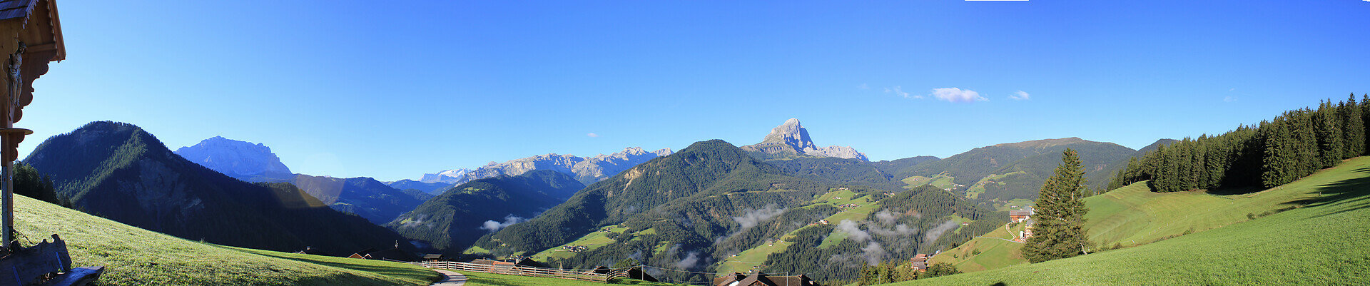 SAN MARTIN › PICOLIN › GRAN JÚ - Trail no.21: From the village centre, follow the roadside pavement to Picolin. Turn right at the crucifix, walk past the chapel and continue uphill along the paved road on the right just after the bridge. After approx. 4 km you will reach the hamlet Jú: Pice Jú on your left and Gran Jú on your right. To the left of Gran Jú, a gravel road leads to Piz de Plaies.