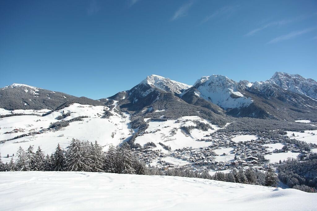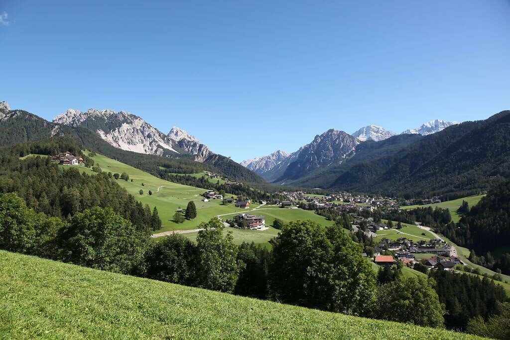 Starting from the Miara cable car, the path winds up the sunny slopes of Ras and Costa. Following