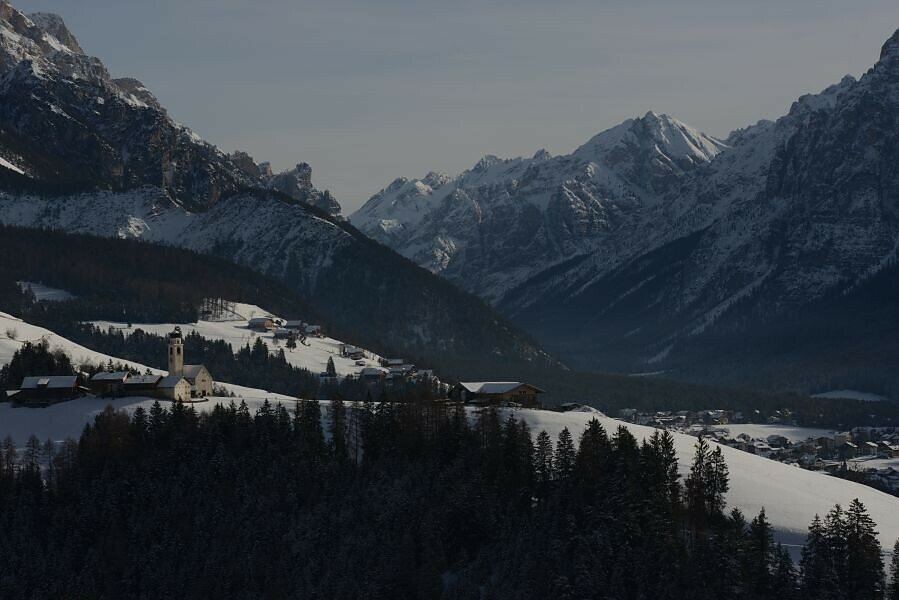 the signs to “A Sorëdl” and walking via Val you reach the hamlet Torpëi. From there continue left on the tarmac road until you reach the village at the level of the Hotel Monte Paraccia