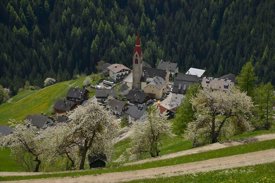 Il punto di partenza di questo itinerario è La Pli. Da qui si possono intraprendere le varie passeggiate alle “Viles” di Brach, Ciaseles, Frontü e Biei. Da ogni gruppo di case, “Viles”, si vedono gli altri, e tutti sono collegati con stradine o sentieri, quindi è possibile crearsi il proprio itinerario e scoprire lo splendido paesaggio e l’architettura delle caratteristiche “Viles” di Marebbe.