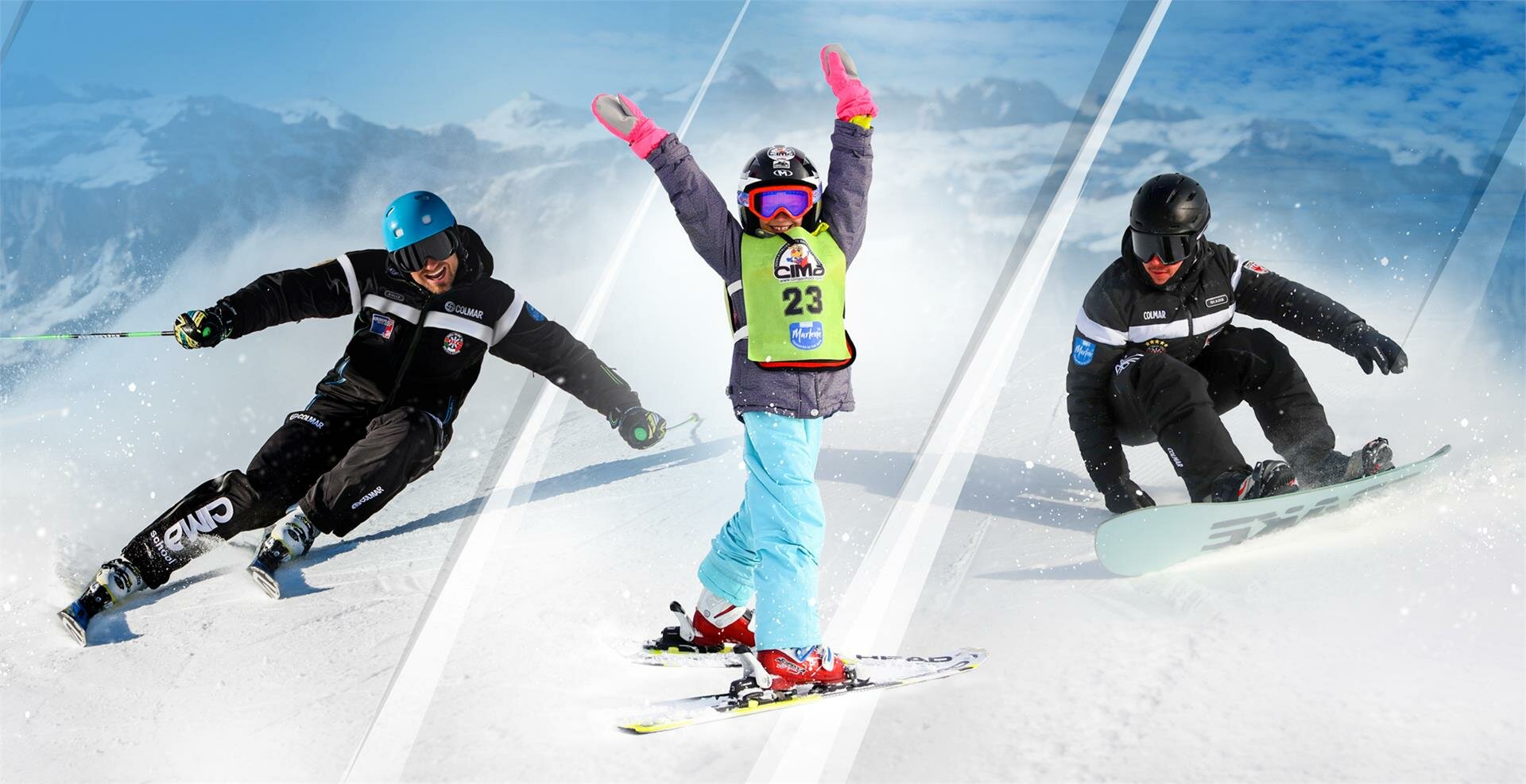 Con lezioni di gruppo oppure individuali: sempre con l’entusiasmo ed il divertimento che vi serve per imparare bene la vostra tecnica preferita e per scendere con sicurezza