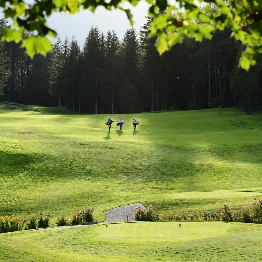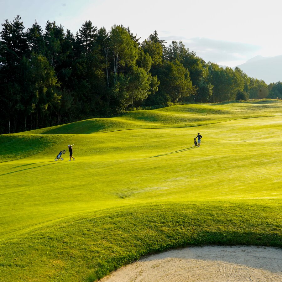 Malerisch geschwungene, saftig grüne Landschaftsformationen, hinter denen sich die Alpen rau, schroff und beschützend in Szene setzen: golfen hat viel mit Ruhe und Konzentration zu tun – und mit großem Respekt und Liebe zur Natur.