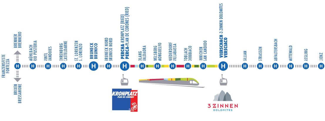 Con il Guest Pass Plan de Corones puoi utilizzare gratuitamente lo Ski Pustertal Express. Chi non è in possesso del Guest Pass può acquistare il biglietto alla tariffa ordinaria – il biglietto non è incluso nello skipass e deve essere obliterato prima di ogni viaggio.