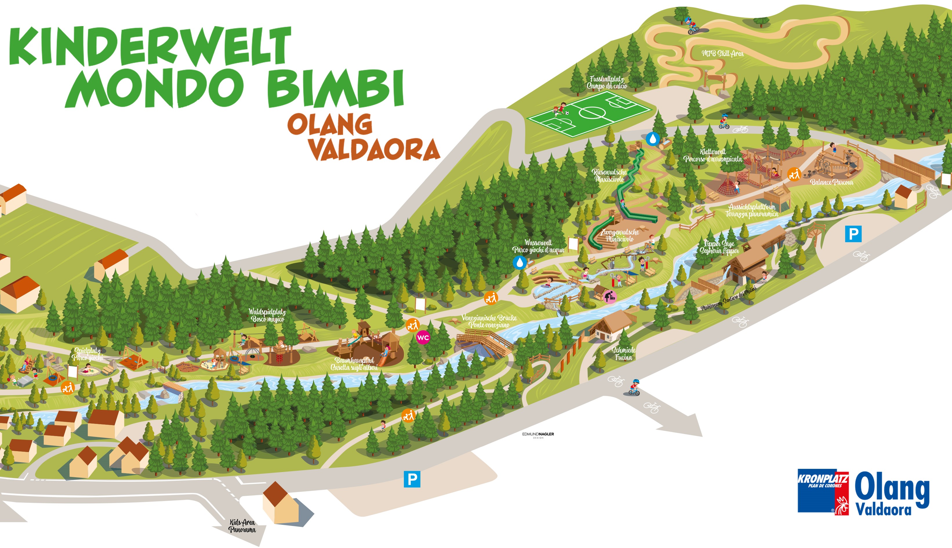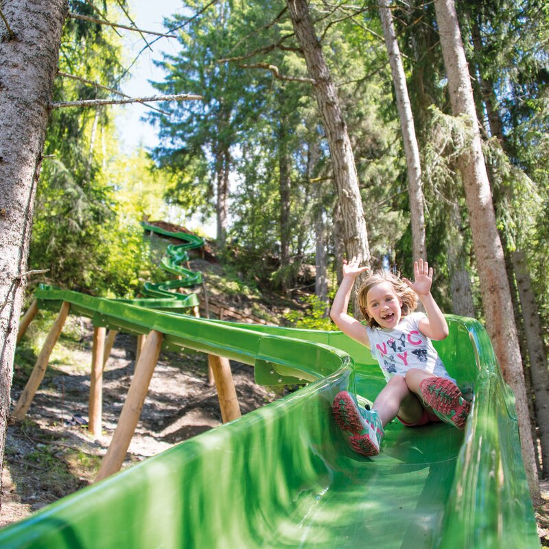 Cosa c’è di più divertente? Anche se, forse, il termine “parco giochi” non rende giustizia a ciò che è stato creato a Valdaora, ai margini del bosco, per le famiglie con bambini: Il Mondo Bimbi è un’area dedicata al gioco e all’avventura, unica nel suo genere, che si estende per svariati ettari, in cui i più piccoli hanno la possibilità di sperimentare, scoprire, dare libero sfogo alla loro incontenibile vivacità e vivere esperienze indimenticabili nella natura. Strutture per l’arrampicata, un parco giochi d'acqua e svariate aree tematiche offrono quella varietà cui i bambini, con la loro sconfinata curiosità, non vogliono rinunciare nemmeno in vacanza. Attrazione indiscussa del parco è il maxi scivolo che, con i suoi 56 metri, è il più lungo dell’Alto Adige. E i genitori? Possono concedersi una meritata pausa, prendere il sole e ammirare il panorama: il degno coronamento di una vacanza in famiglia all’insegna del relax.