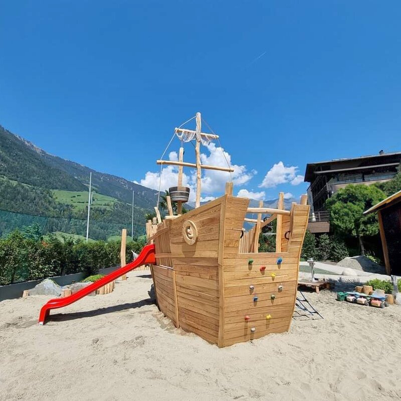 Ahoy, piccoli avventurieri! Da maggio/giugno 2025 vi aspetta una nuova attrazione nel parco giochi acquatico: la nostra nuova nave pirata! Qui potrete arrampicarvi, bilanciarvi e sentirvi come veri corsari.