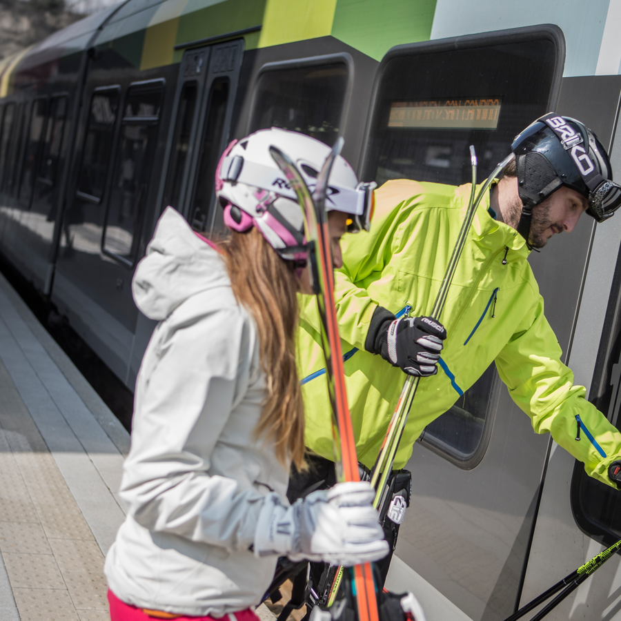 Ogni 20-minuti gli sciatori di Valdaora raggiungono gli impianti di risalita del Plan de Corones con lo skibus. Anche la stazione ferroviaria è collegata con lo skibus. Partendo con il treno dello sci “Ski Pustertal Express” si può raggiungere il comprensori sciistico Tre Cime/3 Zinnen Dolomiti.