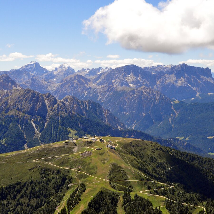 Sopra Valdaora, a 2.275 m s.l.m., troneggia il Plan de Corones: dall’altopiano panoramico, unico nel suo genere, lo sguardo abbraccia indisturbato le imponenti vette dolomitiche, sospingendosi sino ai Tremila del parco naturale Vedrette di Ries-Aurina: un panorama che solletica il desiderio di mettersi in cammino. Ed è un bene, considerando le innumerevoli possibilità che l’estesa area della vetta offre per scoprire l’affascinante universo alpino. Ce n’è per tutti i gusti. Dall’agevole escursione per famiglie con passeggini su un percorso circolare percorribile in tre ore al più ambizioso tour di montagna, nessun desiderio resta irrealizzato. Lungo il cammino, rifugi, una campana della pace e due musei invitano a una pausa variegata. E il meglio deve ancora venire: il paradiso escursionistico del Plan de Corones si estende a soli 11 minuti da Valdaora: tanto dura il viaggio a bordo della moderna cabinovia Olang 1 + 2, che dalla località Casola conduce direttamente in vetta.