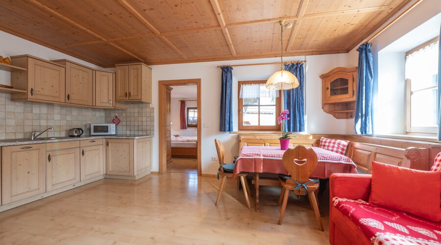In unseren vier im typischen Tiroler Stil eingerichteten Wohnungen, die sich im Erdgeschoss befinden, können Sie den Alltagsstress hinter sich lassen und in gemütlicher und entspannender Umgebung Ihre wohlverdiente Ruhe genießen.